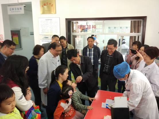 今年的425日,是第32个“全国儿童预防接种日”,武汉市卫计委党委书记朱宏斌、副主任魏善波,洪山区副区长王在桥、疾控处处长吴风波、卫计委主任何龙先等,在校党委副书记陈厚丰的陪同下,对校医院的儿童疫苗接种进行实地考察,慰问预防接种工作人员,省市各大媒体进行了采访报道。